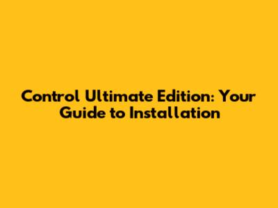 Control Ultimate Edition: Your Guide To Installation