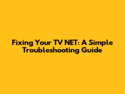 Fixing Your TV NET: A Simple Troubleshooting Guide