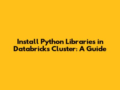 Install Python Libraries In Databricks Cluster: A Guide